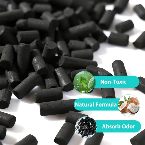Carbón Activado Premium para Eliminar Olores – Nuestros pellets de carbón activado de 4mm, elaborados con carbón de alta calidad, tienen una estructura porosa óptima para neutralizar olores de manera máxima. Ideal para capturar amoníaco, sulfuro de hidrógeno y otros olores desagradables en la caja de arena.